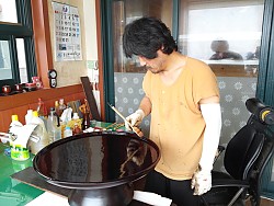 조선소나무 원목 원형상 성형수술 후 옻칠.