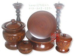 강신석作 투명 정제 옻칠 제기와 생활목기 작품 사진