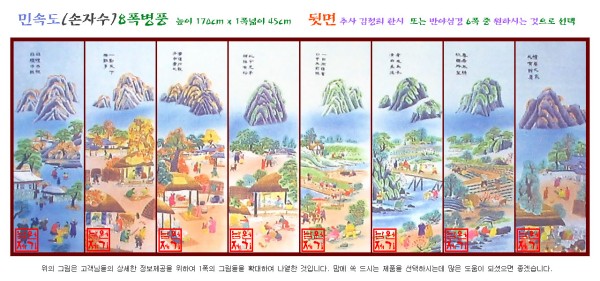 병풍의 그림은 펴고 접을 때마다 수시로 달라지기 때문에 한 자리에 걸어 놓은 고정된 벽 그림과는 다릅니다. 보고 싶지 않을 때는 접으면 되고 보고 싶을 때에는 펴면되는 것이니, 설치미술, 그 이상이라 할 것입니다.