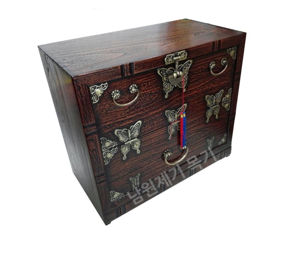 오동나무는 MDF합판이나 다른 목재질과 달리 가볍고 무늬가 아름다우며 부드러우면서도 뒤틀리지 않을 뿐만 아니라 습기나 열에도 강하여 거문고, 가야금 등의 악기제작 뿐만 아니라 문갑, 장롱 등의 여러 가구재로 널리 사용되었습니다. 이와 같은 이유로 인하여 여러 길스러운 장식과 경첩들을 부착시켜 만든 함들은 집안 어디에 두어도 품위와 옛풍이 맛갈스럽게 풍기는 즐거움은 여느 목재질에서 쉽게 볼 수 없는 맛이랍니다. |